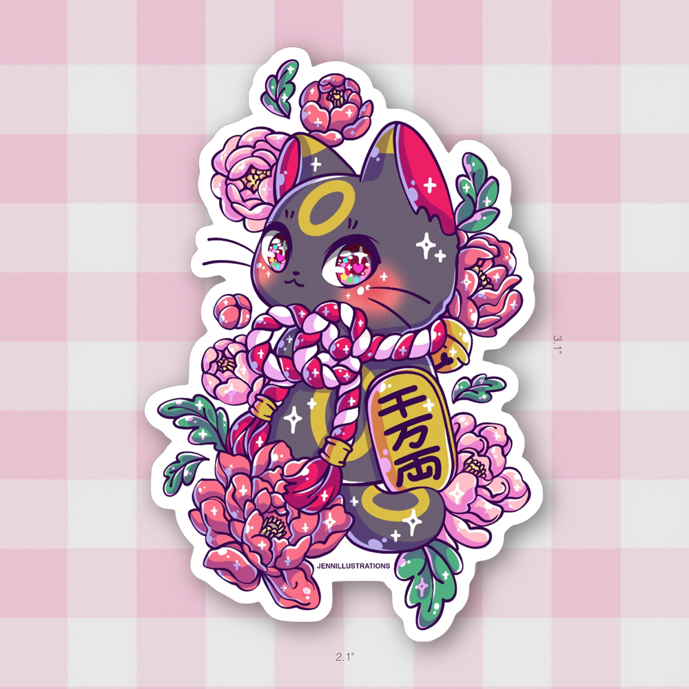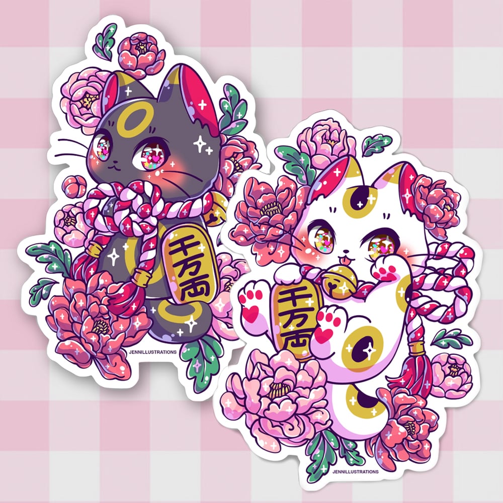 Black Lucky Cat - 2.1x3.1" (5.3x7.8cm) White Lucky Cat - 2.2x3.1" (5.5x7.8cm)