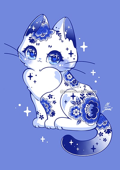 Porcelain Cat Print (6x9") · Jenni Illustrations · Online Store Powered by Storenvy